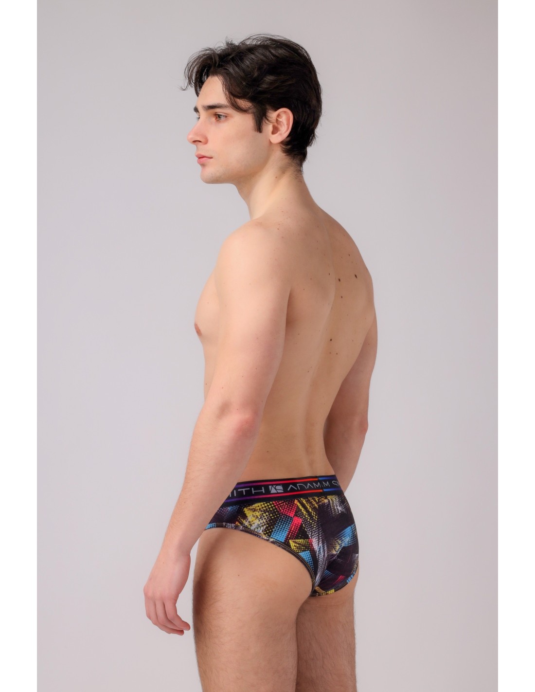 The Adorable Briefs of Adam Smith is a pair of briefs in a vibrant print with abstract patterns and amazing colours. Made from a top quality polyester and elastane blend, these briefs are going to put a smile on your face when you put them on. The pattern is perfectly combined with an Adam Smith branded waistband with colourful stripes framing the logo of the American label. The pouch is contoured to give you space and keep you comfortable and supported throughout your day.