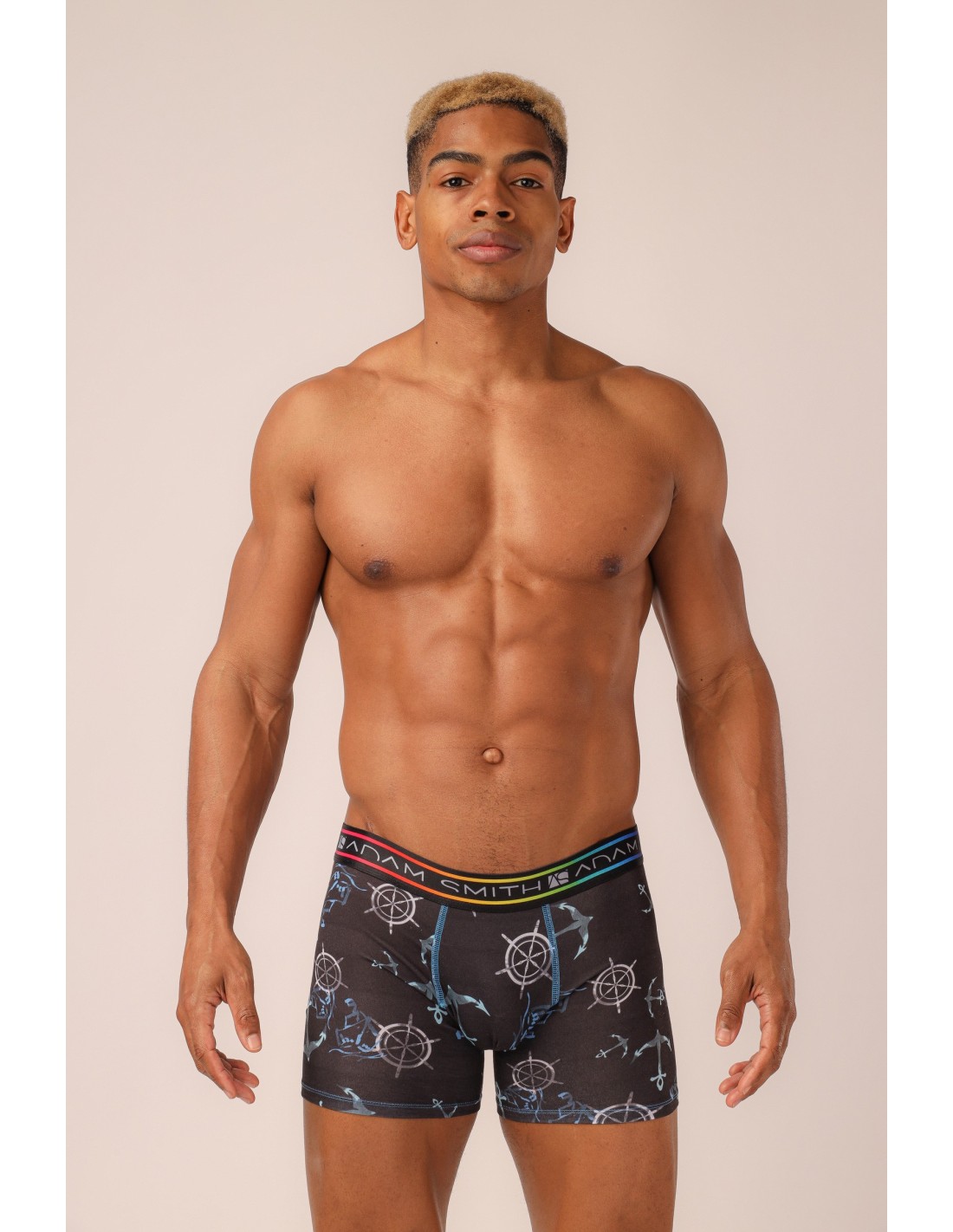 The Adorable Long Trunks of Adam Smith is a pair of boxer briefs in a vibrant print with nautical themed patterns and amazing colours. Made from a top quality polyester and elastane blend, these boxer briefs are going to put a smile on your face when you put them on. The pattern is perfectly combined with an Adam Smith branded waistband with colourful stripes framing the logo of the American label. The pouch is contoured to give you space and keep you comfortable and supported throughout your day.
