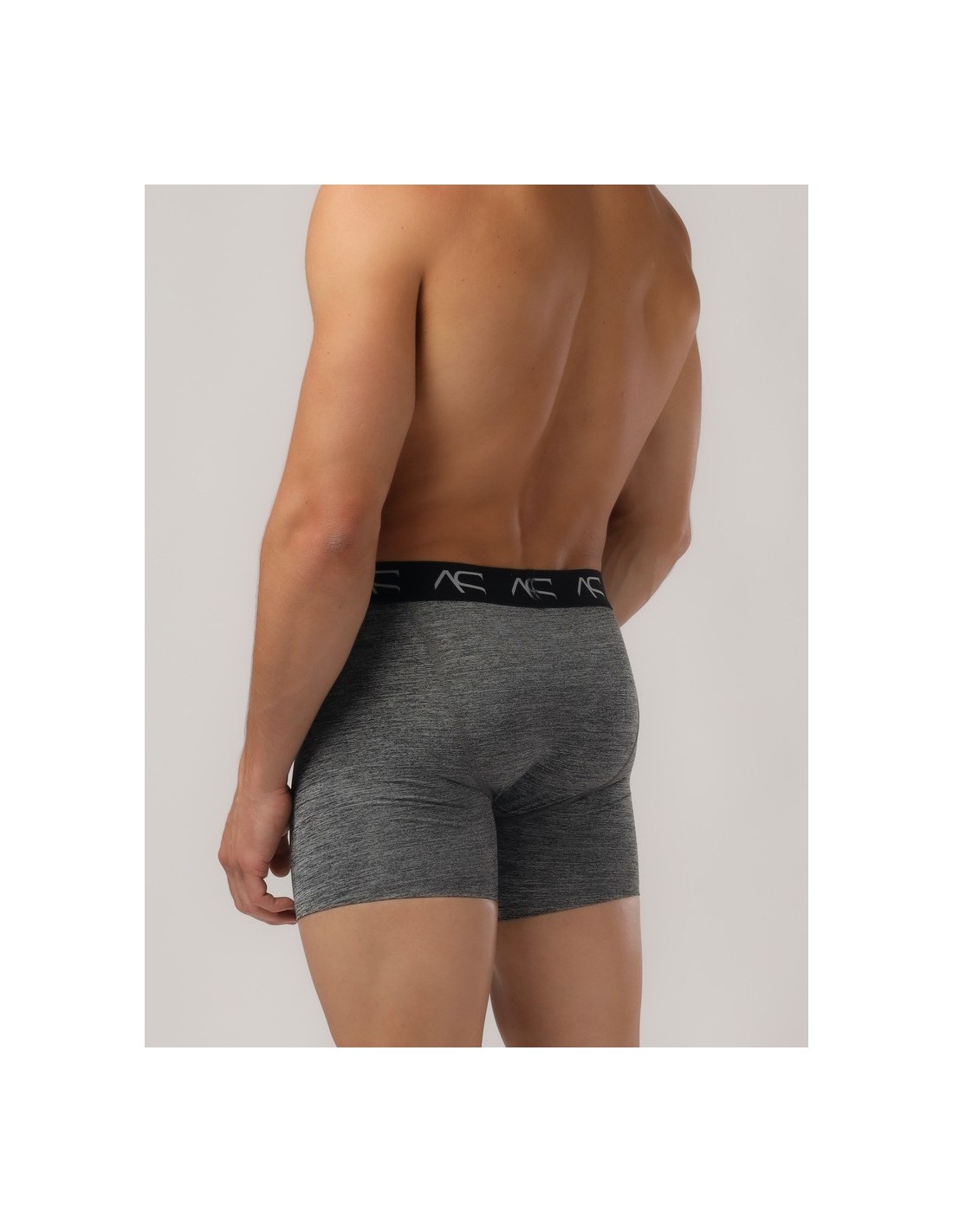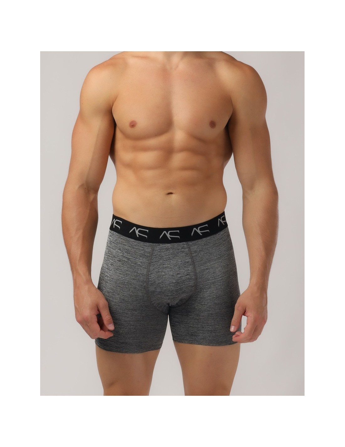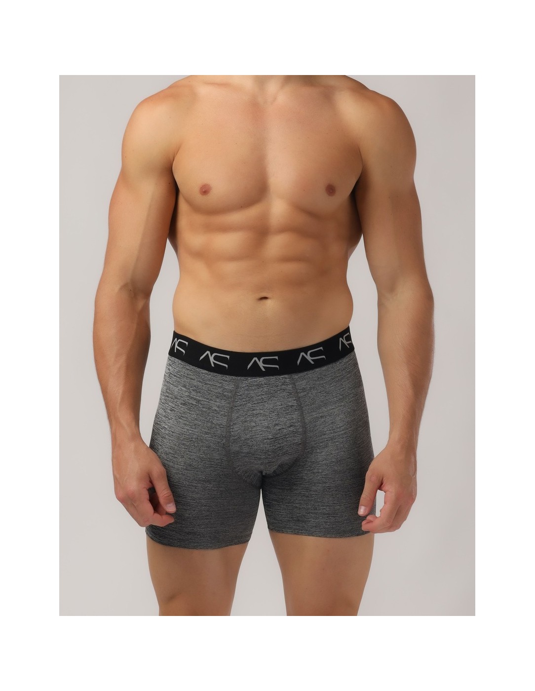 The Adam Smith Workout Trunks are a normal rise, athletic style, grey melange boxer briefs in a modern style! These boxer briefs are made with a stretchy fabric treated with an antibacterial finish to keep you cool and fresh for longer during your work out. This technical fabric makes them perfect for sports, running, hiking, the gym, but also great for every day wear. A modern take on athletic underwear, these boxers have an elasticated waistband with the shortened version of Adam Smith’s logo on. The pouch is contoured and lined for comfort and protection.