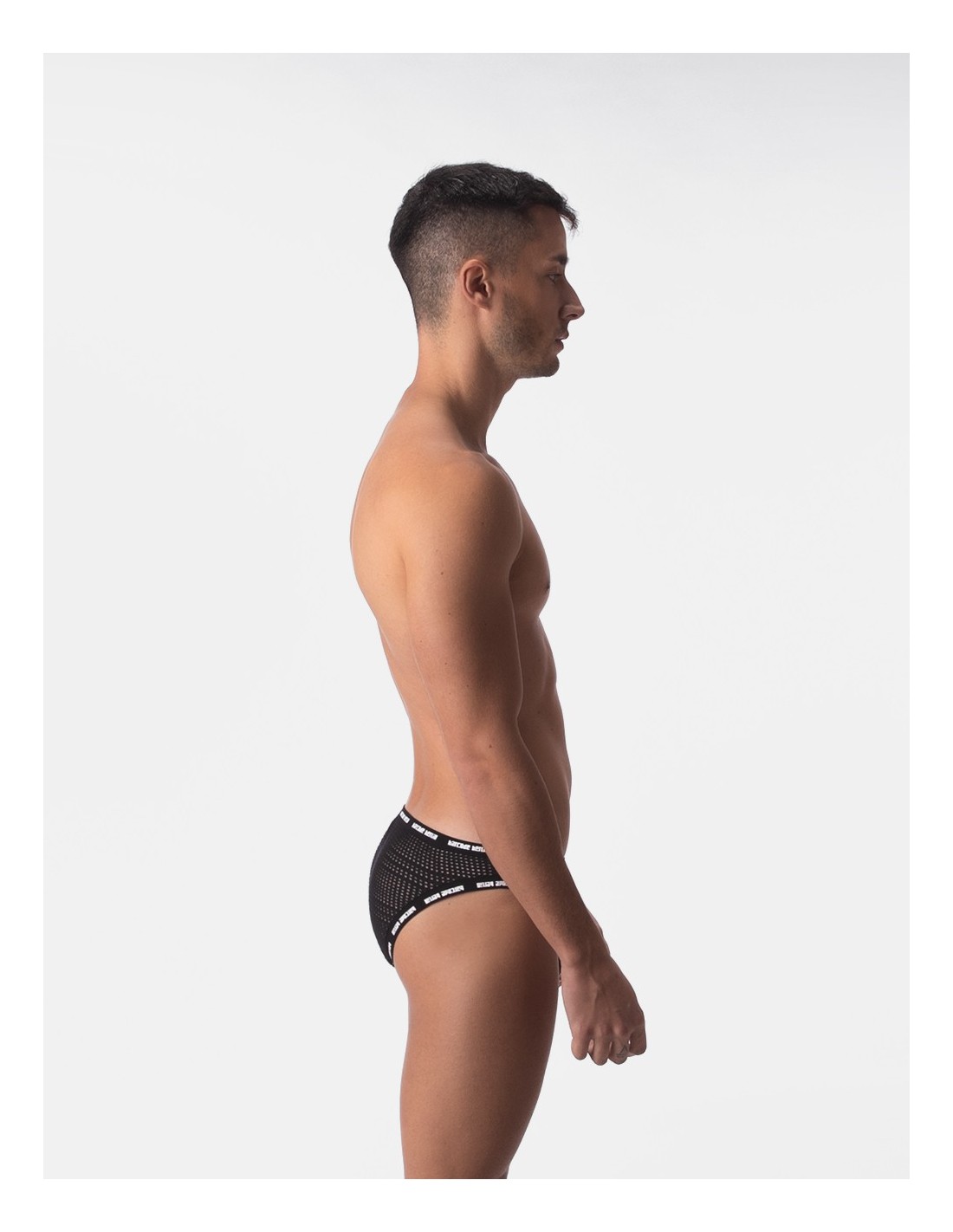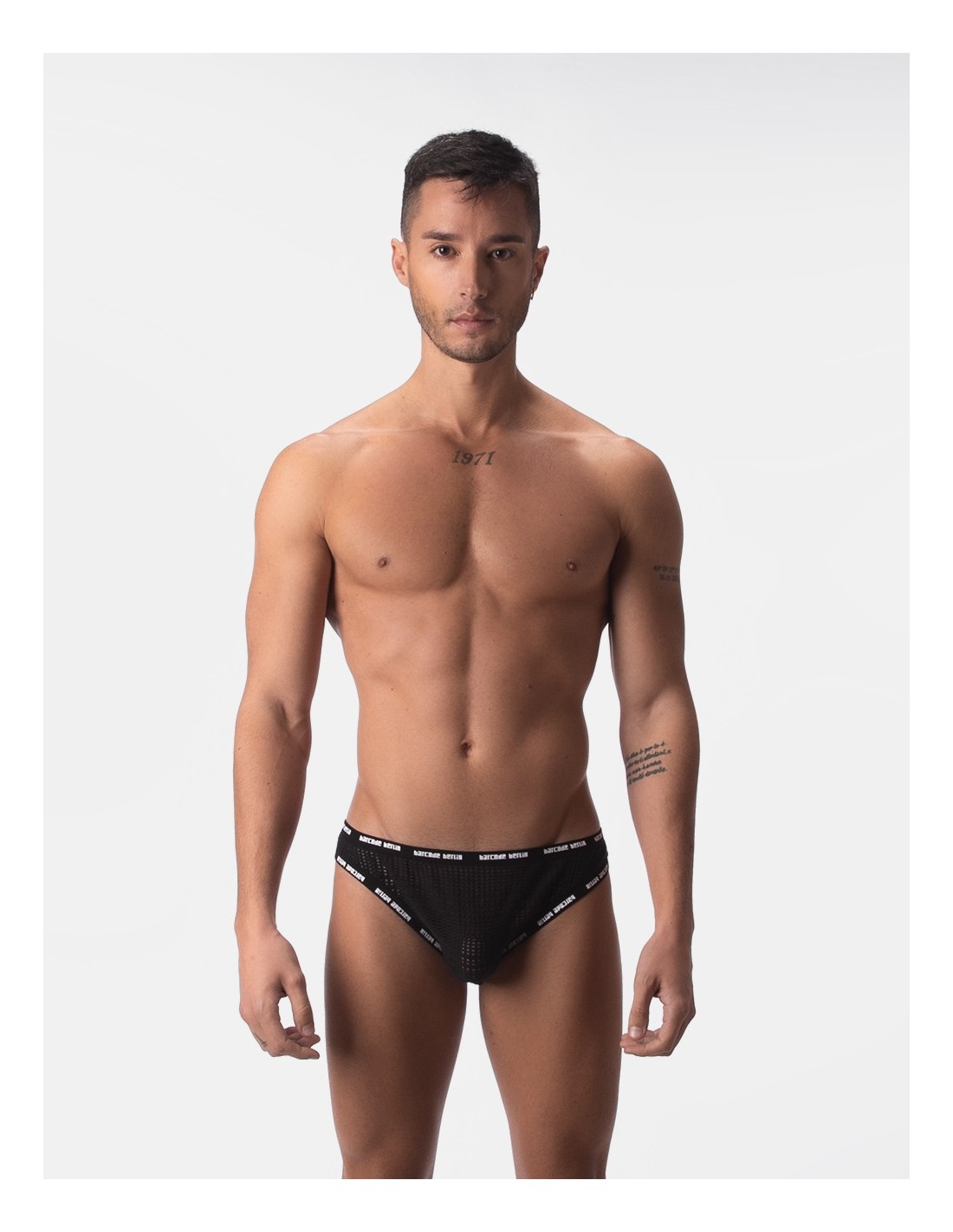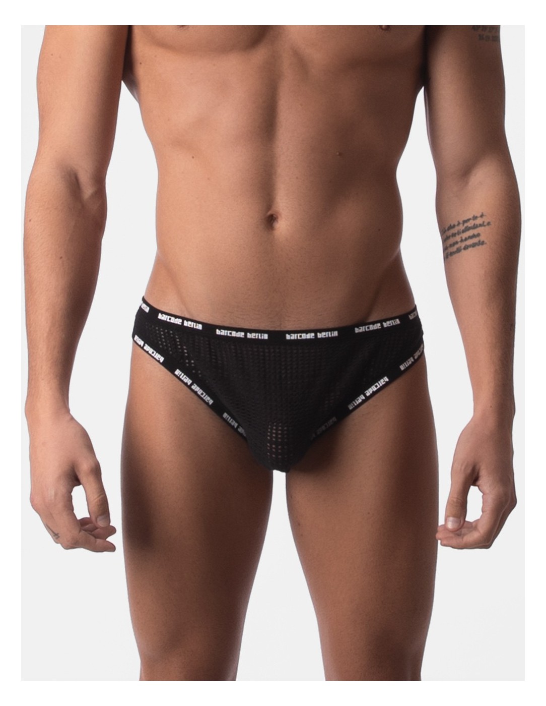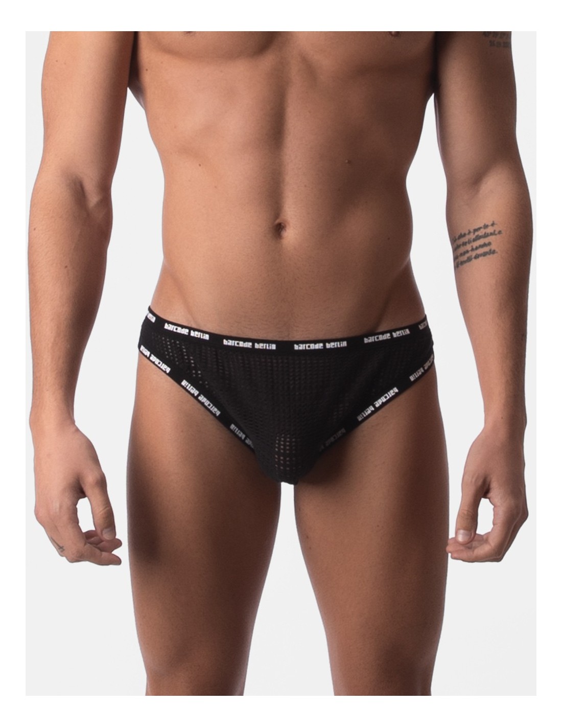 Turn heads with these black mesh low-rise briefs by Barcode. Made from a soft mesh, the Karash briefs are incredibly sexy and feature branded elastic tape around the waist and legs, giving them a bold and adventurous style. They are a one-of-a-kind, collectable pair of underwear that are guaranteed to make a statement. These briefs boast three panels, creating an almost seamless experience, and there is no lining, giving them a see-through effect. The front of the briefs stretches naturally to accommodate your package, while the back offers full coverage. The Barcode logo is printed on the elastics in white silicone lettering using, adding an extra touch of style. Don't settle for boring underwear when you can make a bold statement with these scorching hot briefs.