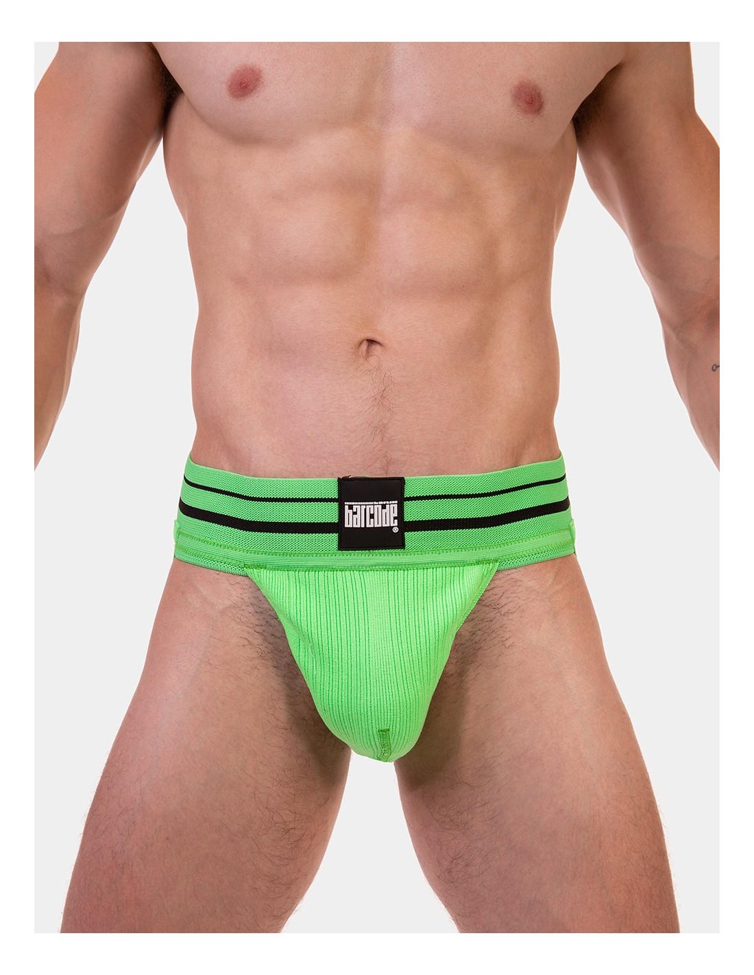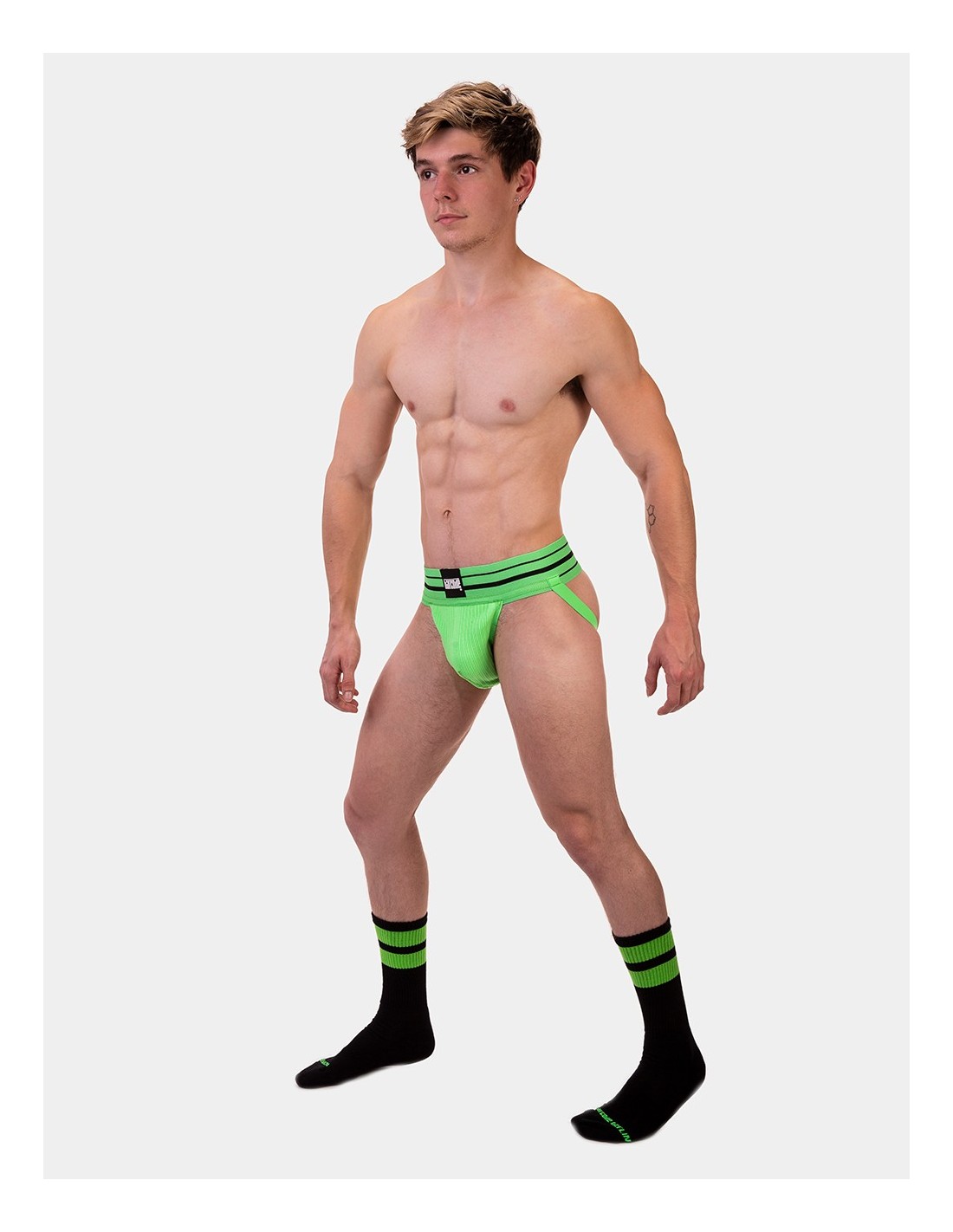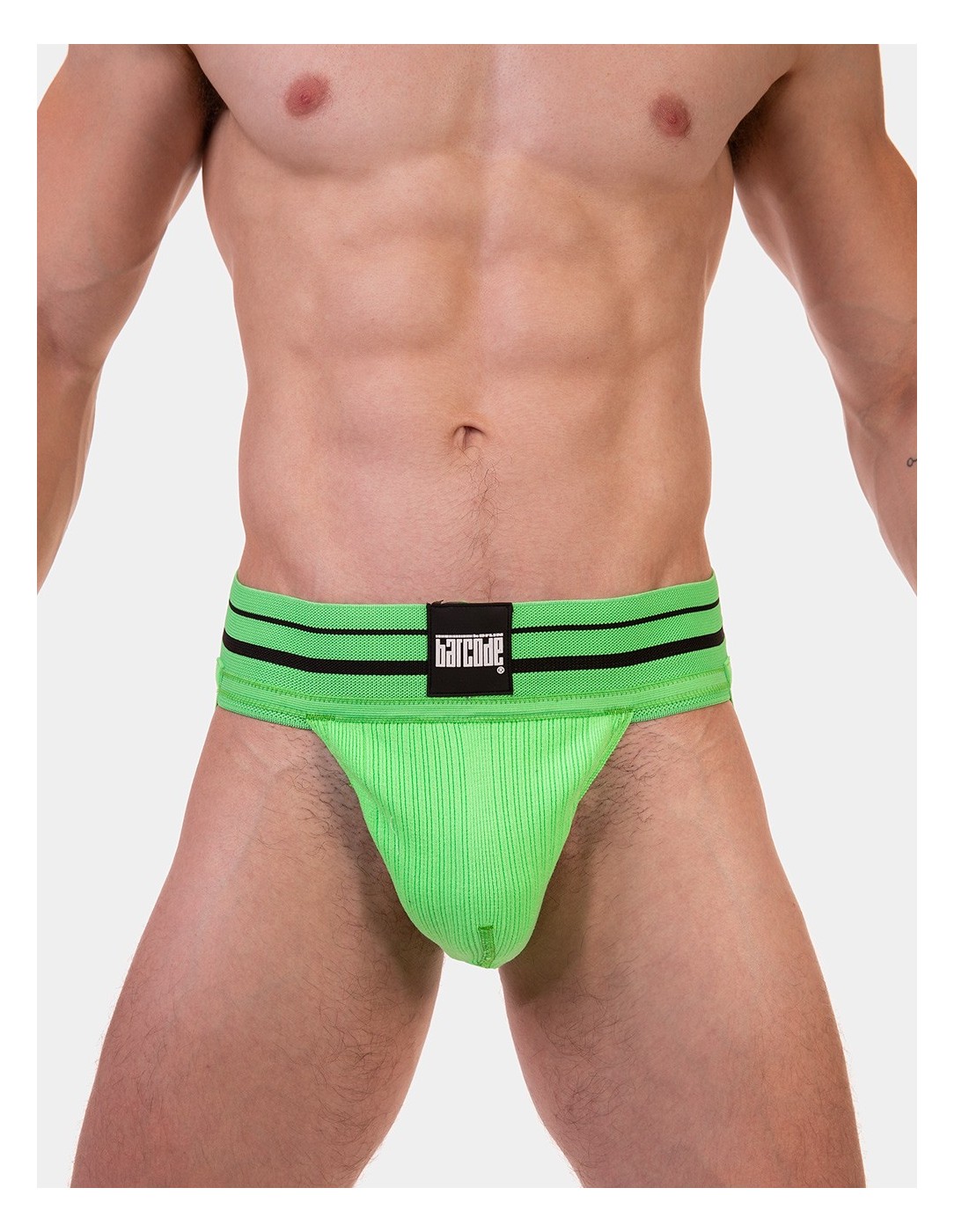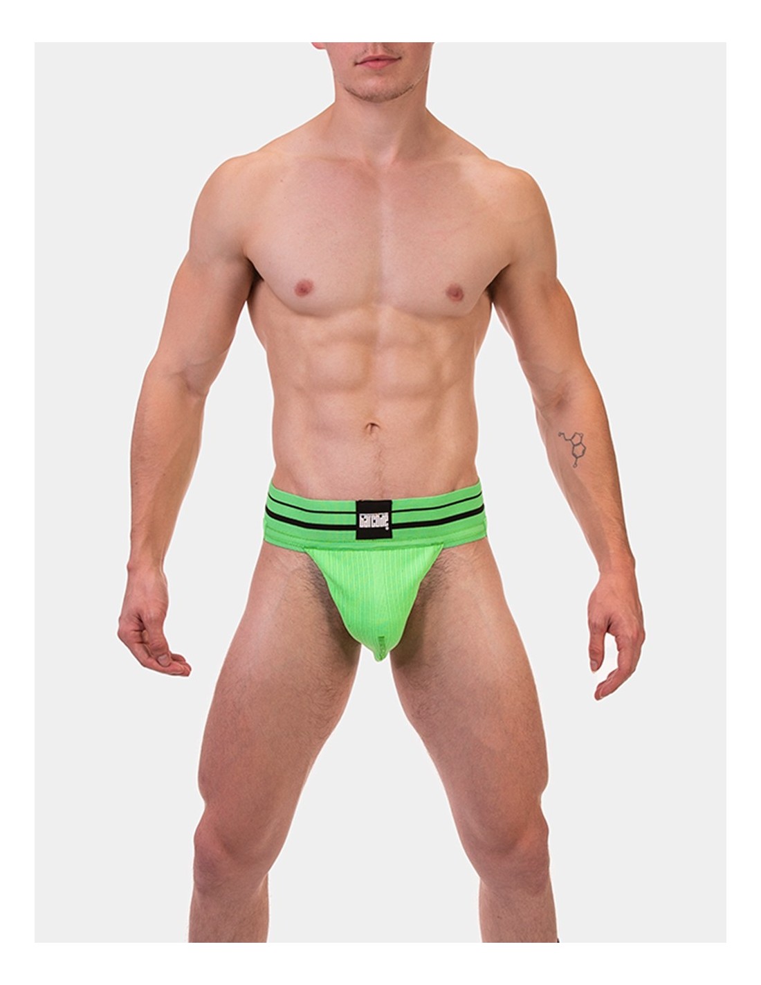 The Andreus Jock by Barcode Berlin is a timeless jockstrap design with a nod to the iconic Bike No10, the jockstrap which started it all! This style is a natural continuation of the best selling Sergey Jock by Barcode Berlin in a new and refreshing neon green colour with black accents. It has everything you love about the Sergey Jock and it is made from a mix of cotton, polyester and rubber in a true fetish-meets-fashion way. It is tough, sturdy and made to work as hard as you do! You can wear this at the gym or any other intense activities. The pouch is made from a ribbed fabric to provide the best hold you can get and the waistband is wide to provide a low rise fit and great support. Undeniably one of the best jockstraps in the world today.