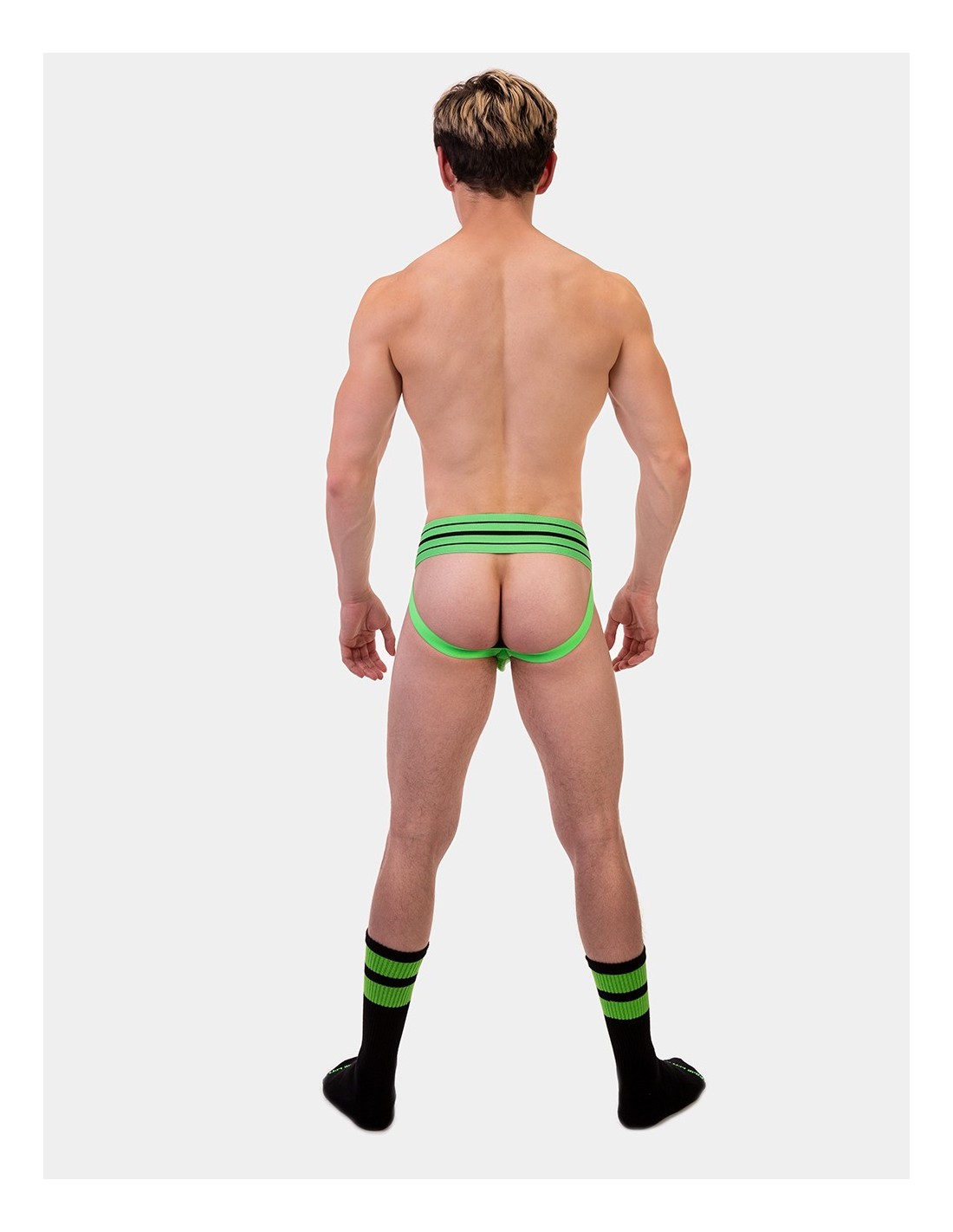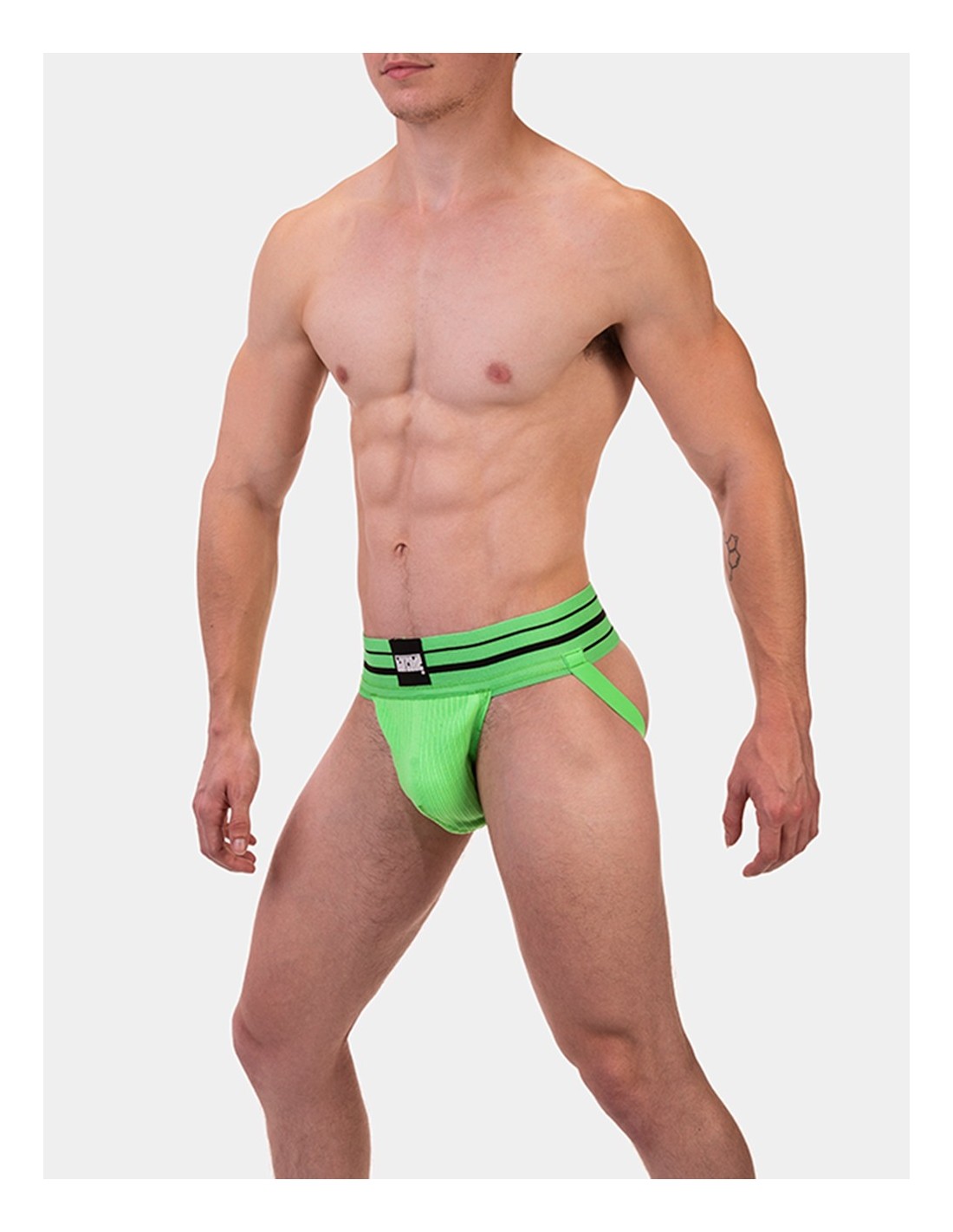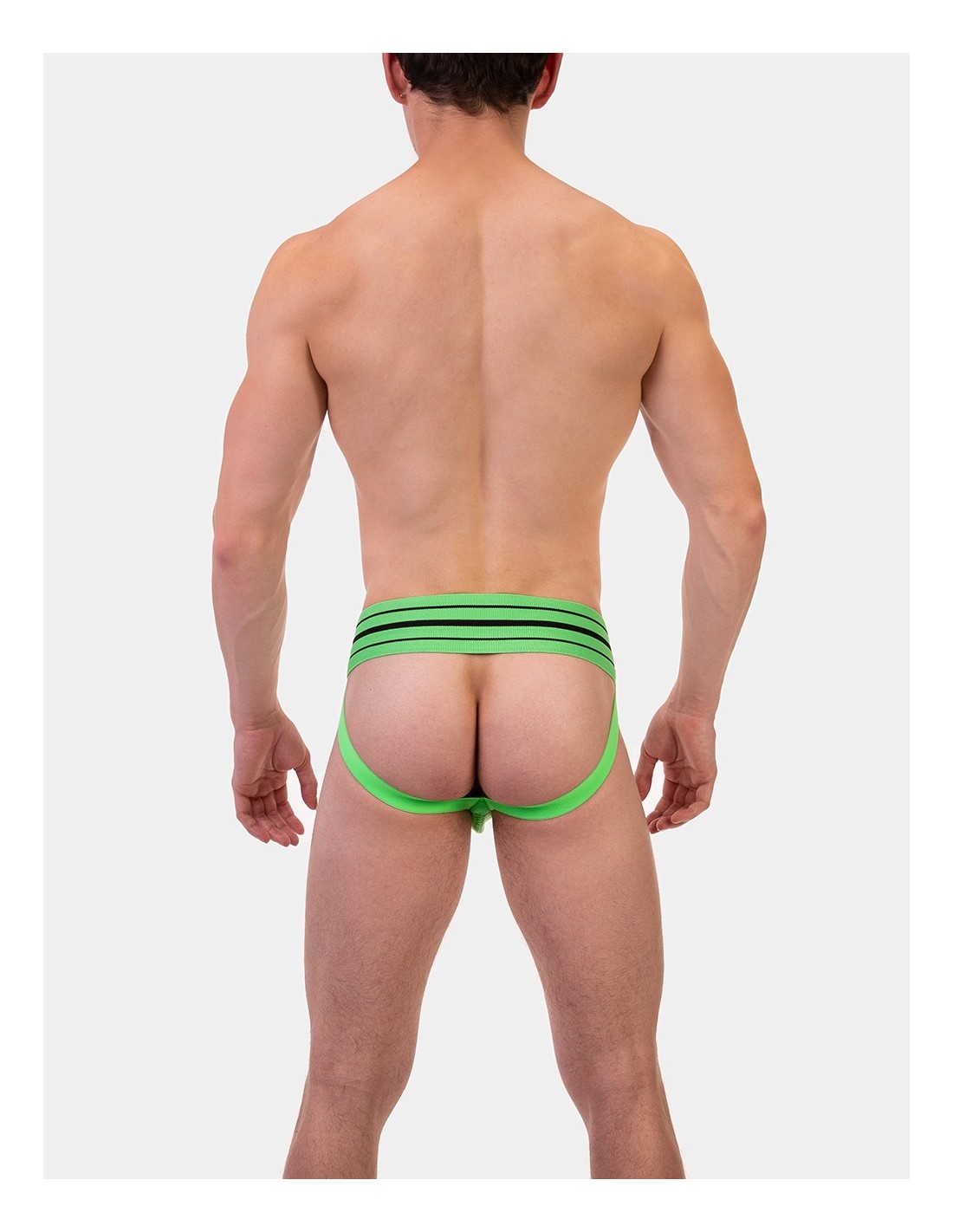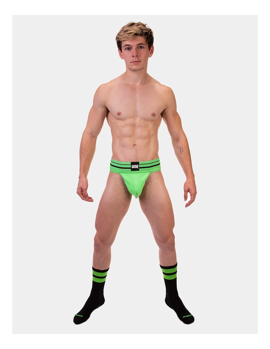 The Andreus Jock by Barcode Berlin is a timeless jockstrap design with a nod to the iconic Bike No10, the jockstrap which started it all! This style is a natural continuation of the best selling Sergey Jock by Barcode Berlin in a new and refreshing neon green colour with black accents. It has everything you love about the Sergey Jock and it is made from a mix of cotton, polyester and rubber in a true fetish-meets-fashion way. It is tough, sturdy and made to work as hard as you do! You can wear this at the gym or any other intense activities. The pouch is made from a ribbed fabric to provide the best hold you can get and the waistband is wide to provide a low rise fit and great support. Undeniably one of the best jockstraps in the world today.