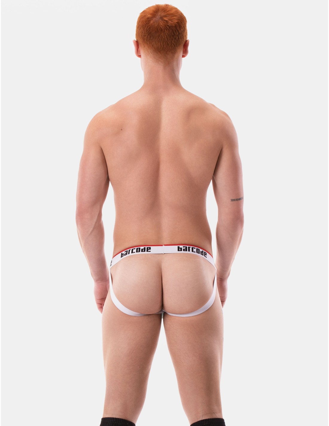 The Cosme Jockstrap by Barcode Berlin is a fresh twist on the classic athletic jockstrap. Designed in Berlin and made in Portugal, this piece combines sporty functionality with contemporary style. Crafted from ribbed cotton, it offers a soft yet sturdy feel, while the spacious, contoured pouch provides exceptional comfort and support exactly where you need it. The design features contrasting details that highlight the shape and give it a fashionable edge. Its narrow, elasticated waistband, adorned with the Barcode logo, ensures a secure fit and a distinctive look. Perfect for everyday wear, the gym, or any high-intensity activity, the Cosme Jock is built to perform — and to impress.