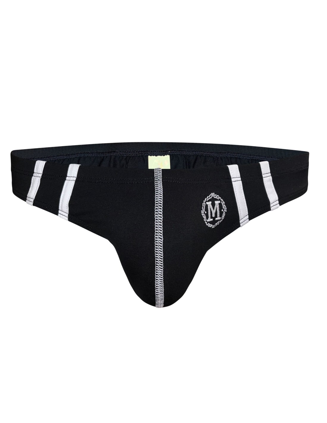 Black briefs in a super low rise cut with contrasting detailing and unlined, contoured pouch.