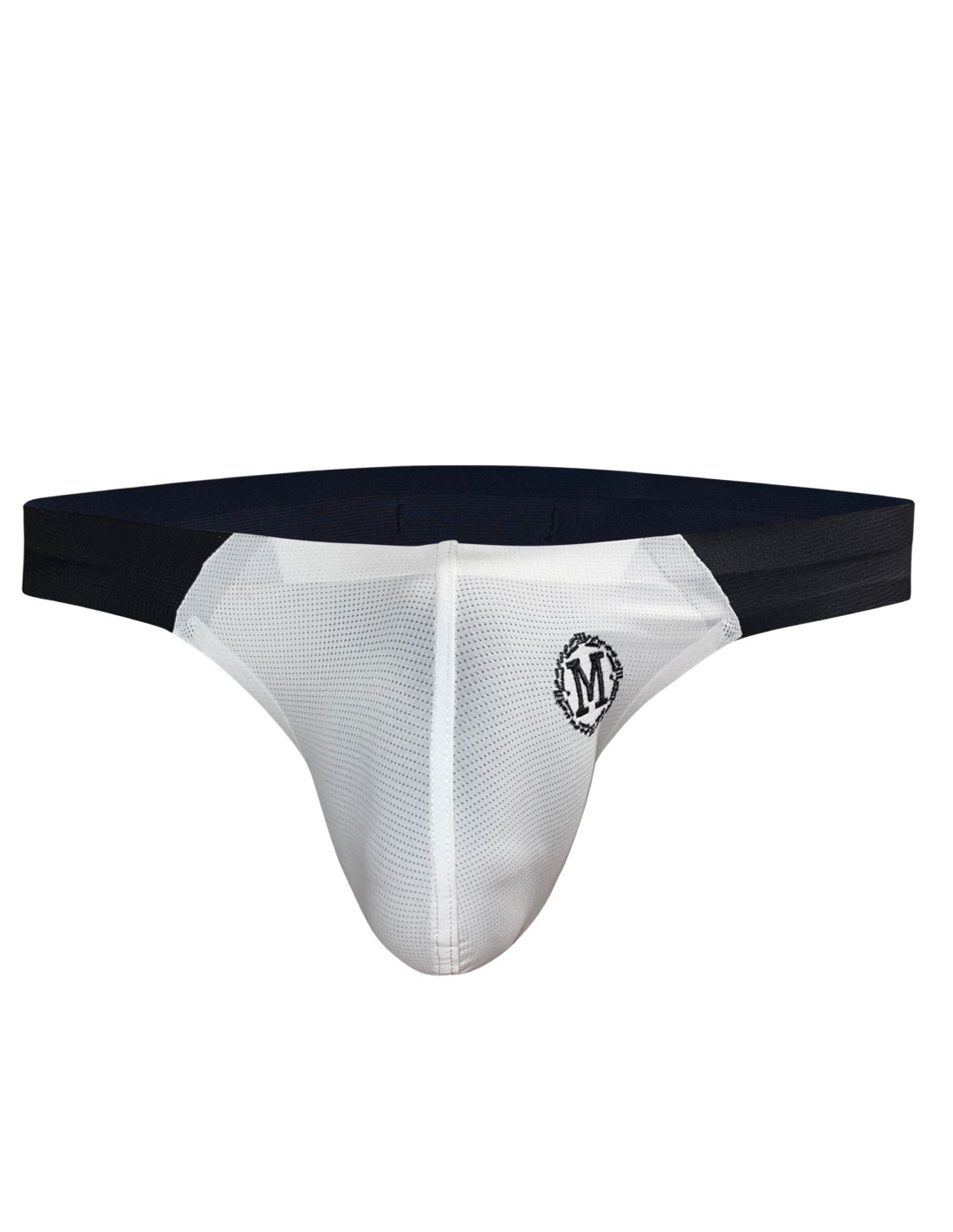 White briefs in a super low rise cut and contoured pouch, made with a lightweight polyamide based, silky fabric.