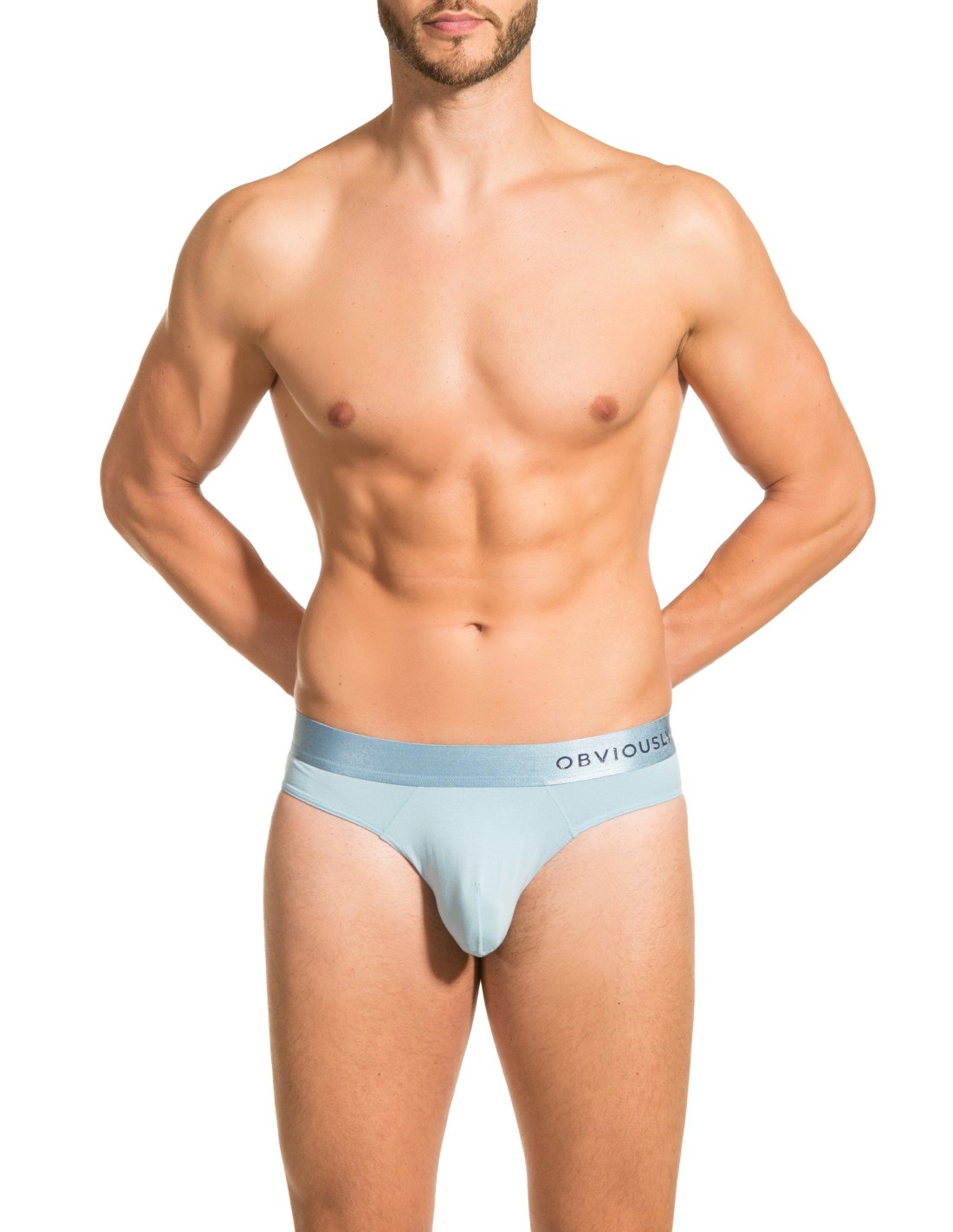 Athletic briefs in light blue grey by Obviously Apparel. The PrimeMan Hipster Briefs feature the AnatoMAX anatomical shape pouch designed specifically for the penis and testicles. This trademark design made Obviously Apparel a world-renowned premium men's underwear brand. These briefs are made from the highest quality micro modal and Lycra blend, which is breathable, moisture-wicking, and unbelievably soft! It maintains the right support and comfort while remaining extremely soft and light on your skin. The fabric is a 4-way stretch which means the garment can accommodate any movement and will flex with your body regardless of the activity. The waistband is soft, thin and elasticated and with proper care, it will not stretch or sag over time. Timeless, top quality and perfect for any day!