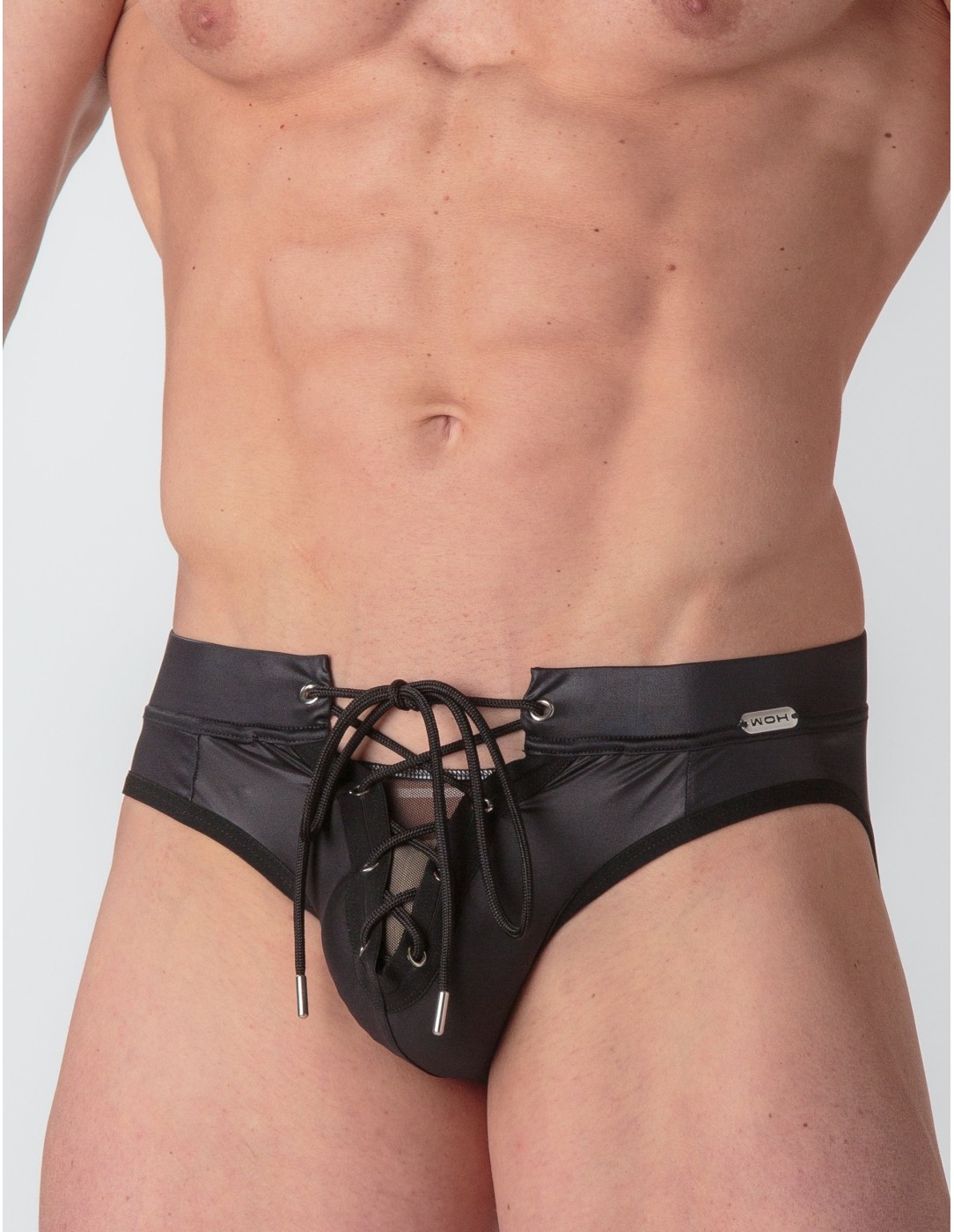 WOH - Night Universe Lace-Up Briefs - Black Leatherette