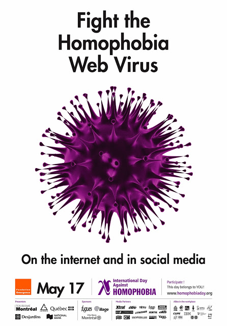 The theme of the International Day Against Homophobia 2013 campaign is Fight the Homophobia Web Virus. The campaign image shows a virus seen under microscope. This homophobia Web virus, of course, has no face or colour. Its illustration is an element of communication