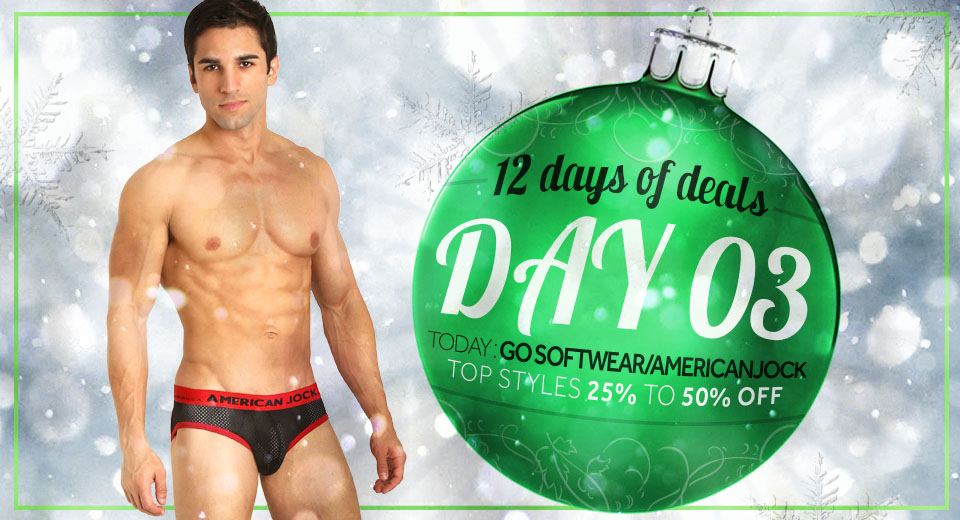 Started two days ago and will last for ten more days, International Jock helps you with your Christmas shopping by making 12 special deals one for each day! Today’s deal is 25% to 50% off items from Go Softwear and American Jock. Follow this link and make sure to check it every day to find the offer you like best!