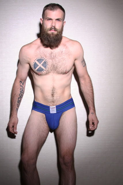 We haven’t shown you a model with a beard for quite some time so here is how we will make it up for you. Enjoy the photos below with model Marvel Sollars (and one of the longest beards we have ever posted on Men and Underwear) photographed by Timoteo Ocampo. Designer and photographer Timoteo Ocampo was recently in Columbus, Ohio for an event of his brand Cellblock13. We heard that he worked on two campaigns/shoots there and this is the first one. Marvel Sollars is posing in the latest underwear designs by Cellblock13 and he is looking great!