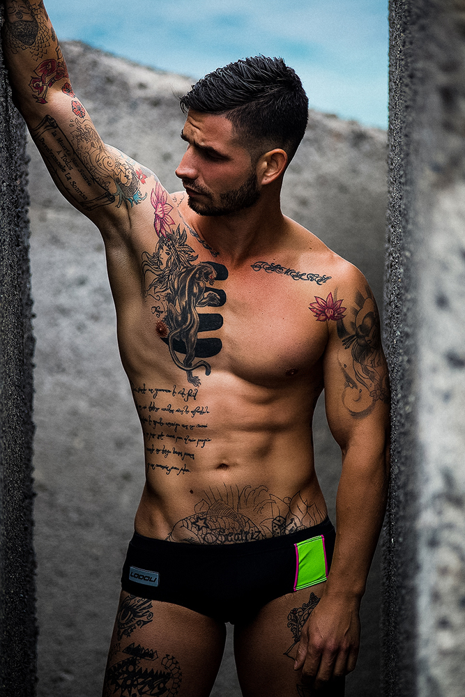 We are happy to show you today the latest work of one of our favourite photographers, Adrian C. Martin. Martin collaborated with model and tattoo artist Airam Castedo and Croatian brand Lodoli to feature some of their latest men’s underwear designs. The outcome, we think, is fantastic!