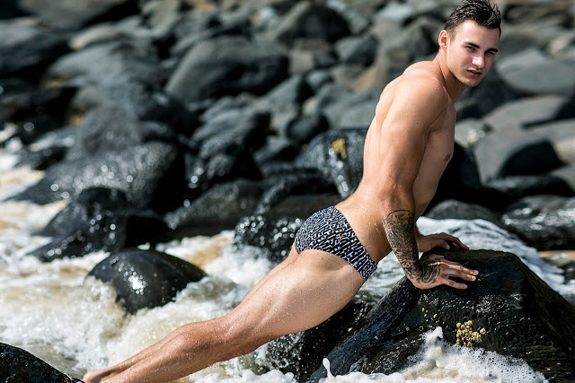 Australian men’s swimwear and underwear brand Marcuse has just released some great new photos for their Summer 2016 swimwear collection. The shots feature items from their Mono, Sailor, and Tropical collections. The photographer is Russell Fleming and the model you see posing in the new swimwear is Jay Lee.