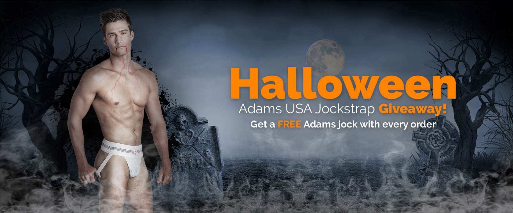 Here’s a hair-raising, spine-tingling Halloween offer for ghouls of all walks of life (or death). Even flesh-hungry zombies need athletic support! So right now you can get a FREE Adams USA jockstrap with every order placed at