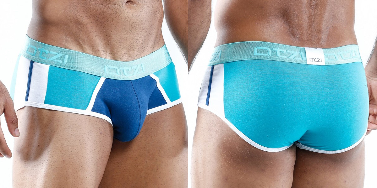 Our underwear suggestion today is a vibrant pair of briefs by the always colourful brand Otzi. The Dreamlike feeling brief by Otzi features colour blocking with jade, blue and white panels. The cut is a classic brief with contour pouch and elasticated, branded waistband. This briefs is made from a cotton blend fabric with 5% elastane added for a great fit.