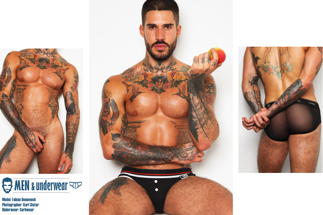 The model we feature today is Fabian Domenech and his recent collaboration with photographer Karl Slater for Curbwear. Fabian is a designer, yoga teacher and CrossFit coach. The photos below are from an editorial published in KALTBLUT Magazine with styling by Kennedy Silver. Fabian Domenech is seen wearing the Crown Brief and Chelsea Brief by Curbwear.