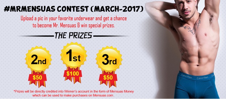 You have the freedom of choosing any style from the conventional brief underwear to jockstraps, thongs, g-strings, tangas, boxer briefs and more. Once you take a full selfie of your body wearing your underwear (no nudity), you have to enroll yourself at mensuas.com and post your photo on the platform. Once done, make your photo viral among your friends asking them to like your photo on Mensuas to climb the ladder and be the winner of the same.