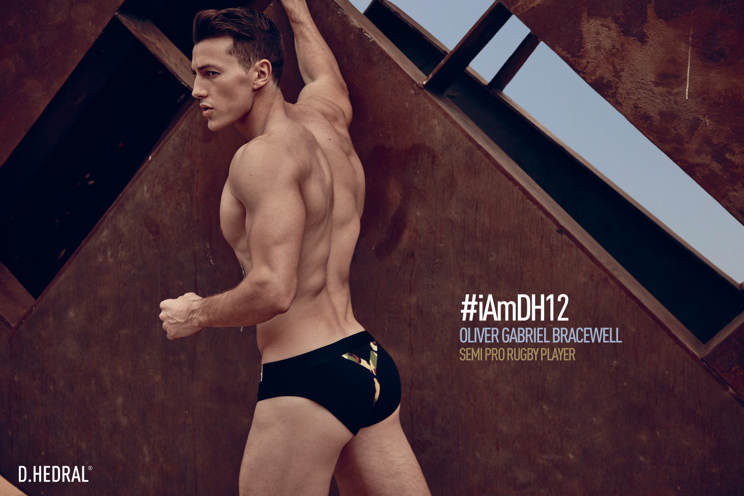 They are currently at the mid-way point of their current promotion of featuring gorgeous men across the globe with an inspiration story, and in their latest edition, D.Hedral has chosen Oliver Gabriel Bracewell. The half-Kiwi, part Maori, Sydney-born rugby player headlines this edition of their DH12 series, striking a few winning poses in the label’s ACE and Gigolo Joe II Camo briefs.