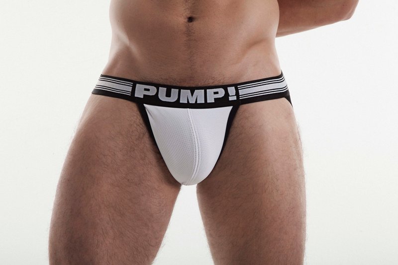 Say hello to autumn with the sporty new jockstraps Free-Fit by PUMP! launched at Jockstraps.com. The new designs feature a double-ply pouch, contoured from top to bottom made from a breathable mesh fabric, a nylon/cotton and elastane blend. The construction of the pouch will offer support as well as extra space exactly where you need it. The waistband is 1.7″/4.3 cm wide with the PUMP! logo centred at the front and one more on the back left. There is a different colour piping around the pouch to match the leg straps.