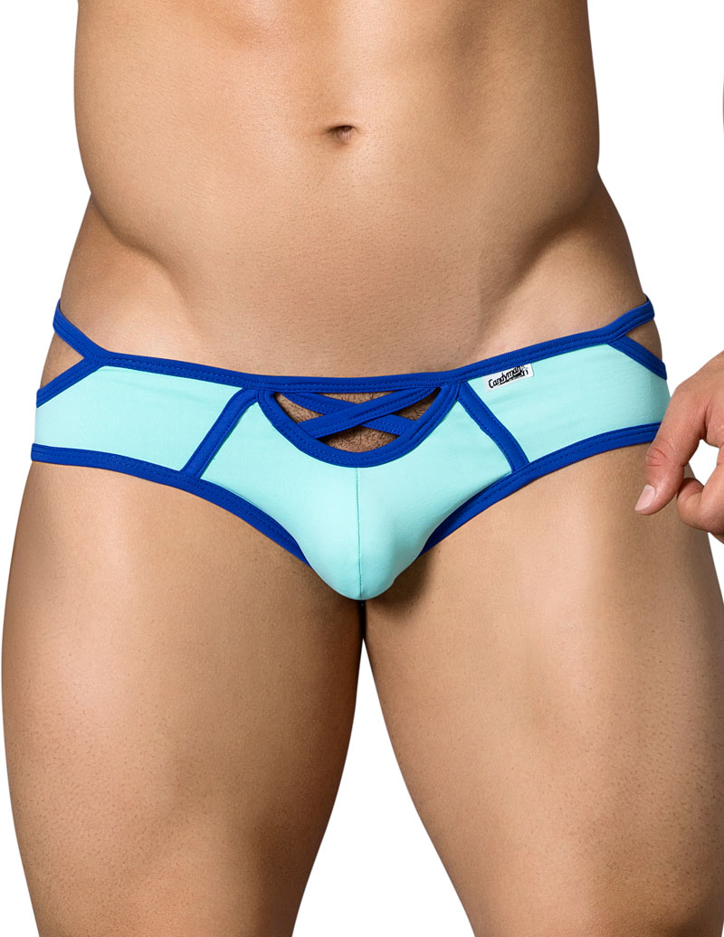 The Soft Mints Briefs by Candyman are amazingly sexy underwear with contrasting trim on the waist, legs and pouch made from a soft and resilient material which takes you to a new level of glamour! The cut is low rise offering total coverage on the back to give you comfort-ability and sexiness at the same time. The design features an innovative cut out with thin straps on the pouch. The fabric is microfibre to provide support and comfort exactly where you need it. This underwear is handcrafted in Colombia.