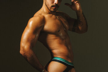 A skimpy underwear in a colour blocking design is our underwear suggestion today. The Hip Rider Curved Mesh Jockstrap by PPU is an innovative underwear style offering a very minimal coverage with a sporty twist. There is no waistband around the hips. The garment’s leg strap go up and around the hips to meet at the front and hold the underwear in place. The pouch is contoured offering more space and the fabric is a lightweight microfibre offering definition. This ultra low rise jock is handcrafted in Colombia.