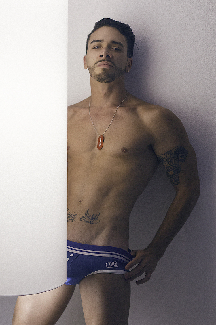 The latest editorial photographed by talented photographer Adrian C. Martin features model Zeus Gonzalez and the latest underwear and swimwear designs of UK based brand Curbwear. Zeus has been featured quite a few times in Men and Underwear. The young model was born and resides in the Canary Islands. He is working as a professional therapist and does modelling in his spare time.