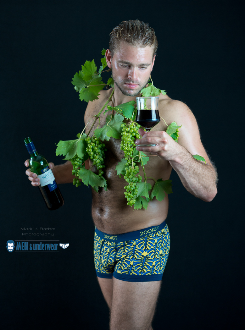 Autumn means yellow leaves, the first drops of rain, grapes and, in our case, new underwear collections! German born and UK resident, photographer, Markus Brehm presents one more editorial, exclusive, for Men and Underwear with cover model Phil Bruce. The two talented and very kind men worked together in a series of photos featuring the new Palm Print Trunks by 2XIST supplied by our shop. Phil is posing against a dark backdrop which makes his physique, the props and his underwear stand out. Give a round of applause for these two guys, the work of whom we absolutely love and support.