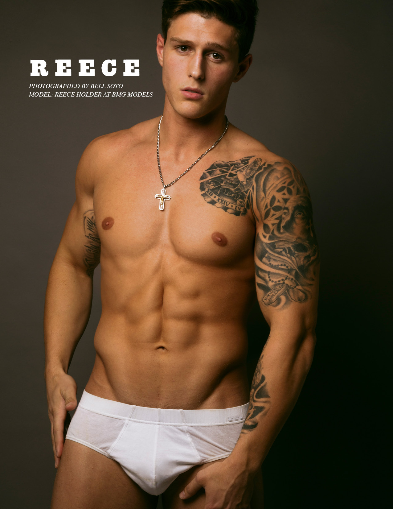 Model Reece Holder at BMG Models featured in Yearbook Fanzine photographed by Bell Soto in underwear by Impetus.