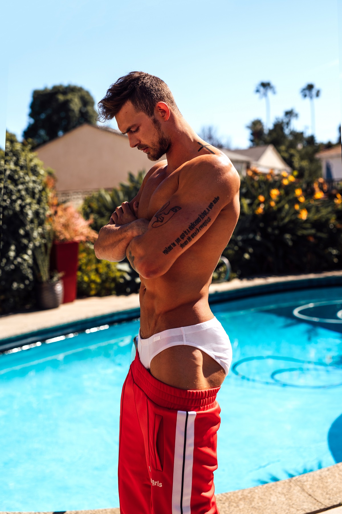Model Jamie gets photographed by Pantelis in underwear and swimwear from various brands for Coitus Magazine.