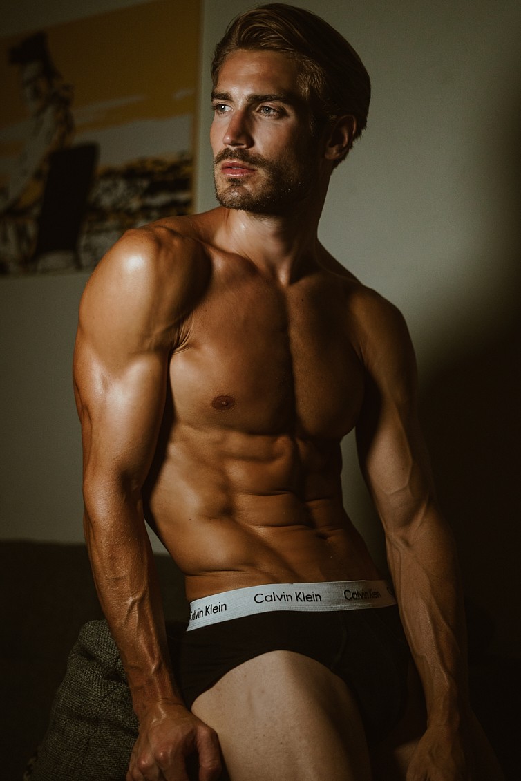 Top model Lucas Bloms of DT Model Management gets photographed in his calvins by Gastón McGary for Victor Magazine.