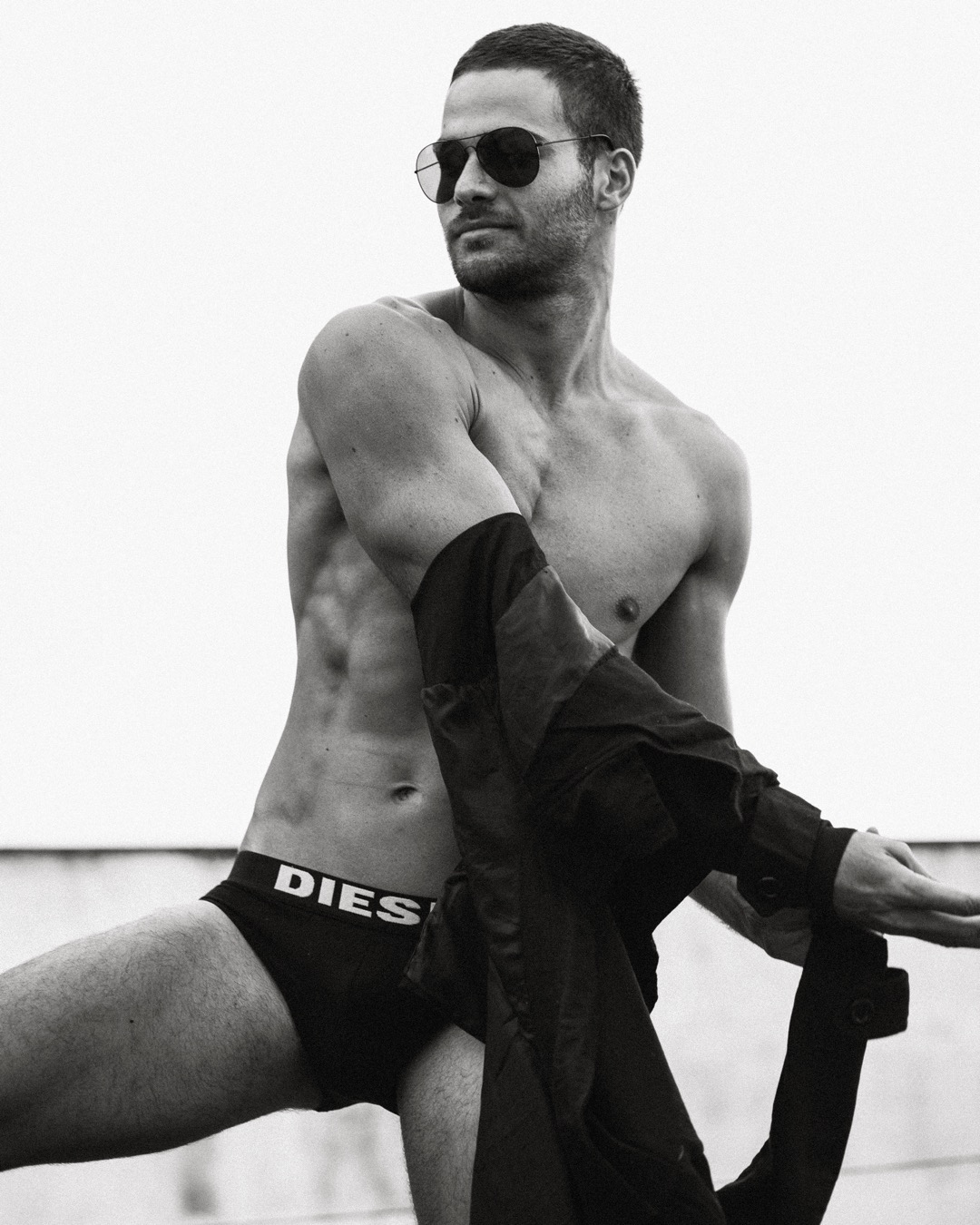 Web-exclusive editorial in Maximo Magazine featuring model Caio Bonacina in black briefs by Diesel, captured by photographer Marsovi.