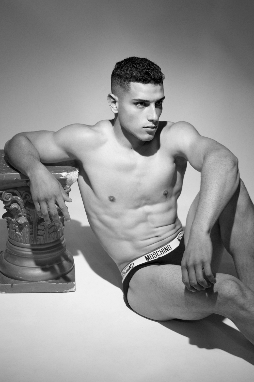 Spanish model Bruno Miranda gets photographed by De La Cruz in his black calvins in an arousing feature in Eroticco Magazine.