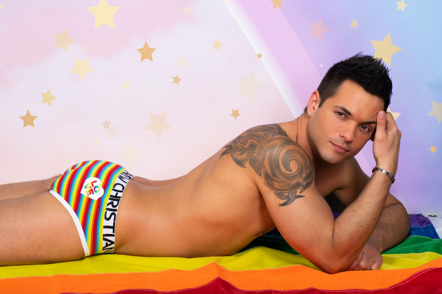 One more charming choice from Andrew Christian for that special day is the low rise Pride Rainbow Stripe Love Brief. The print features fun rainbow stripes, while white trim and stitching that add a pop of flare to this already eye-catching underwear. This brief has a white heart on the back with the word LOVE in it. The white heart represents purity, innocence and truth, key elements for a healthy and balanced relationship.