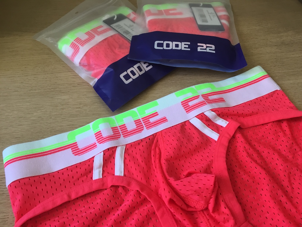 Our underwear suggestion today is the vibrant Neo Mesh Briefs of CODE 22. These low rise briefs are made with a quick-dry and breathable nylon blend, perforated fabric which will keep you cool for longer. The design features two sporty stripes left and right of the pouch and a striking new elasticated waistband in neon green, pink and white. The pouch is unlined and contoured for space and comfort. These briefs are perfect for every day wear, the gym and pretty much any occasion. They are fun, sexy and cool!