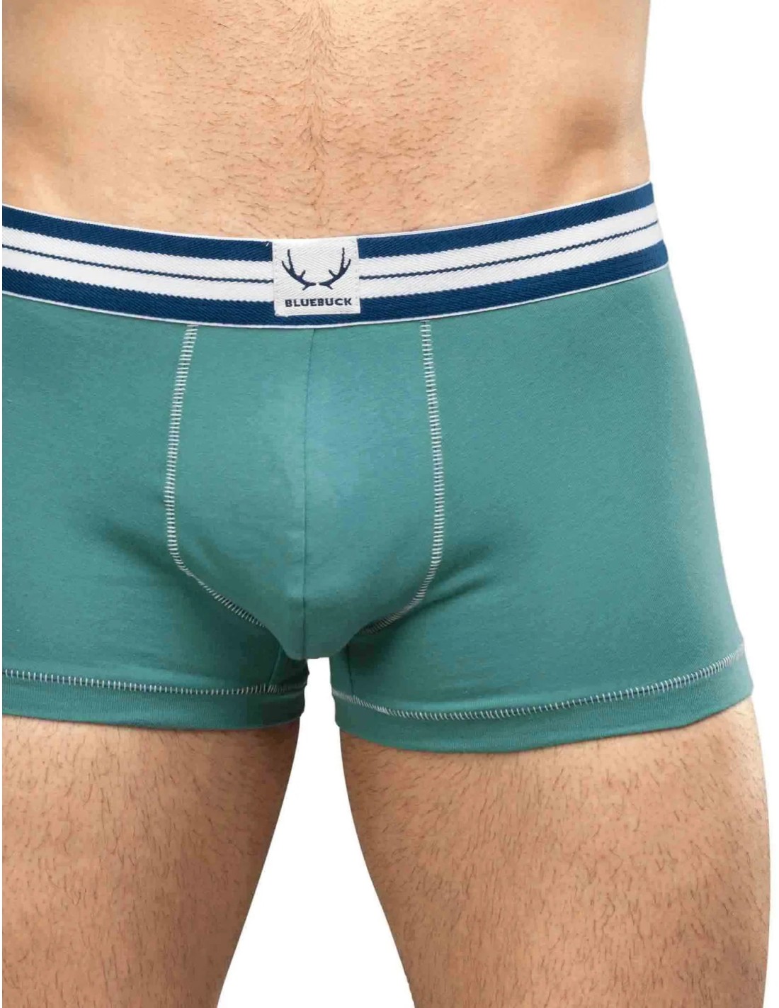 Our underwear suggestion today is one of the most eco-friendly men’s underwear in the market! The Green Trunks of Bluebuck are the UK brand’s take on mid-waist fitted boxer briefs. These trunks are made from Global Organic Trading Standards-certified organic cotton, with some elastane added for stretch and a great fit. The beautiful green of this garment is perfectly combined with a navy blue waistband made with at least 60% cotton in a herringbone knit pattern with the Bluebuck logo centred in the middle. Bluebuck only uses the finest cotton yarns to knit the fabric for their timeless trunks. This explains why they are so soft and long-lasting, retaining both shape and colour for wash after wash. Bluebuck underwear is made in an eco-friendly Portugal factory that uses electricity from renewable sources.