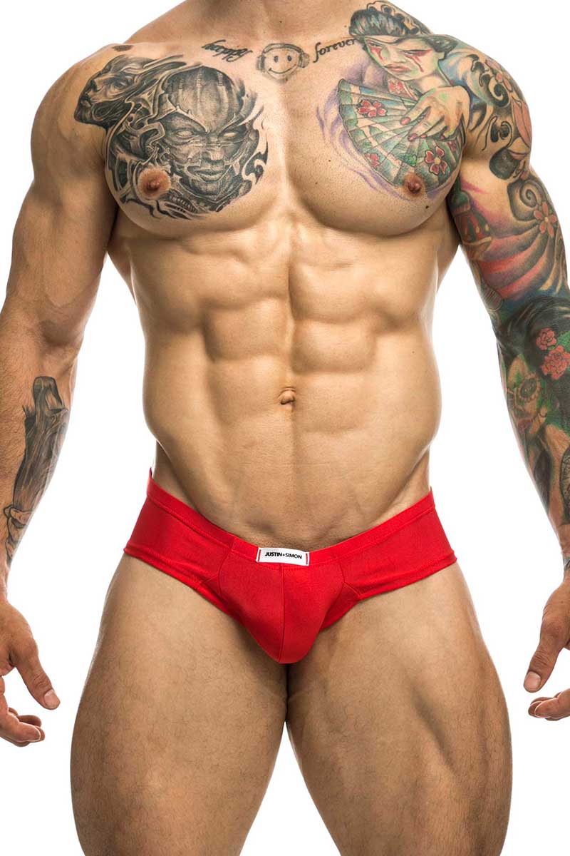 A sexy pair of low-rise briefs in red is our underwear suggestion today. The Cheek Bikini by Simon + Justin is handcrafted in Colombia and made from super soft, stretch microfiber fabric that fits sleek and trim. The low-rise, lean-cut silhouette provides plenty of coverage with a sexy edge.