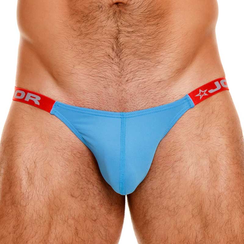 Our underwear suggestion today is a pair of low-rise bikini briefs in blue. The Dante Bikini by JOR is made with a resilient fabric that is quick dry and super sleek. This low rise, lean cut bikini provides coverage where it counts. The ergonomically shaped pouch provides extra comfort, thanks to the anatomical fit.