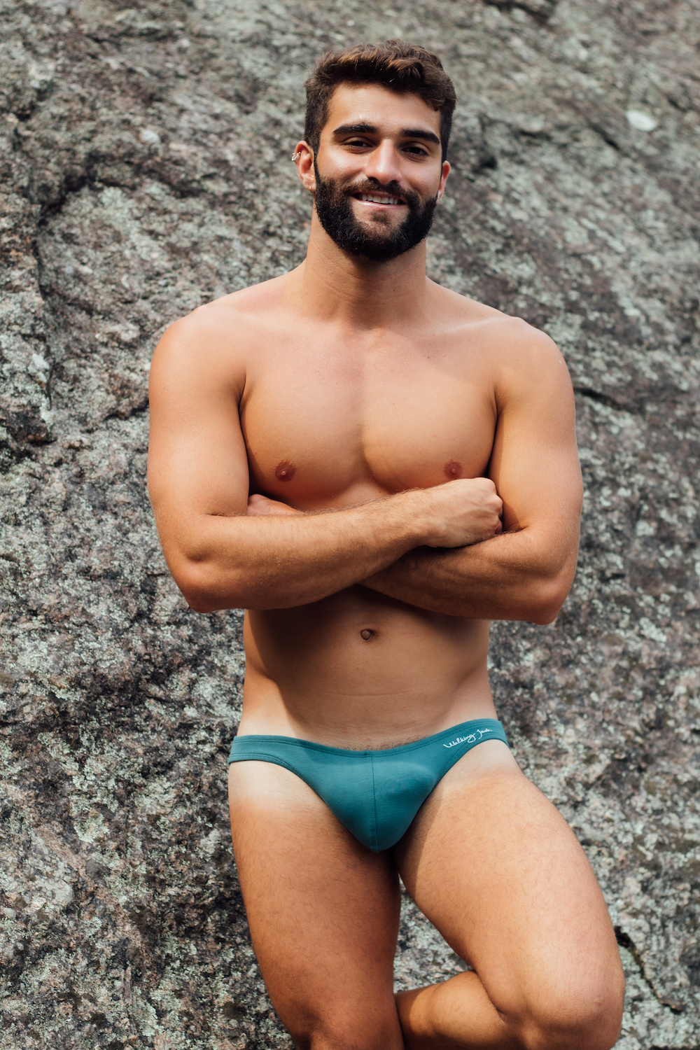 The briefs’ campaign was captured by the talented Brazilian photographer Beto Urbano. He photographed the Micro Briefs in Rio with model Lucas Costa to showcase the collection’s alluring and environmentally conscious qualities. Instead of taking photos of Lucas at the famous Rio beach, the photographer opted to capture him amidst rocks, leaves, and the sky with its accompanying clouds, resulting in the colour scheme seen in this line.