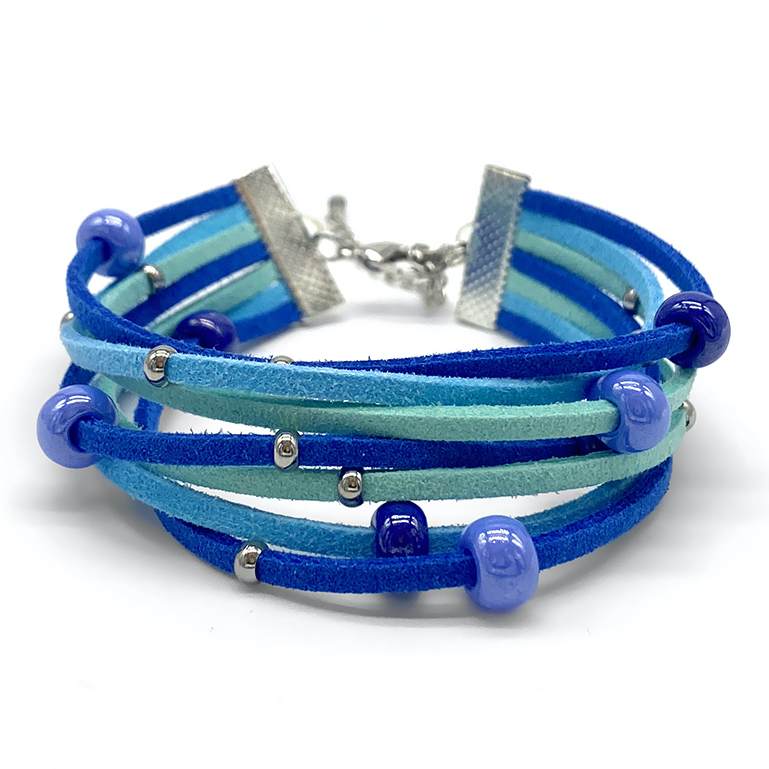 We are thrilled to have received three new and distinct bracelets from Zosimi Beads today, adding to their stunning range of handcrafted jewelry. The bracelets are made of microfiber strips that resemble suede and come in shades of blue, turquoise, and green. They evoke thoughts of summer and will certainly brighten up any outfit.