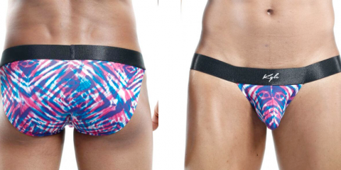 In the images below, Sasha poses in the yellow Tahiti Thong. The Tahiti collection is a vibrant display of colour-blocking and lightweight fabrics. This collection includes briefs and thongs, available for purchase at Men And Underwear with worldwide shipping.